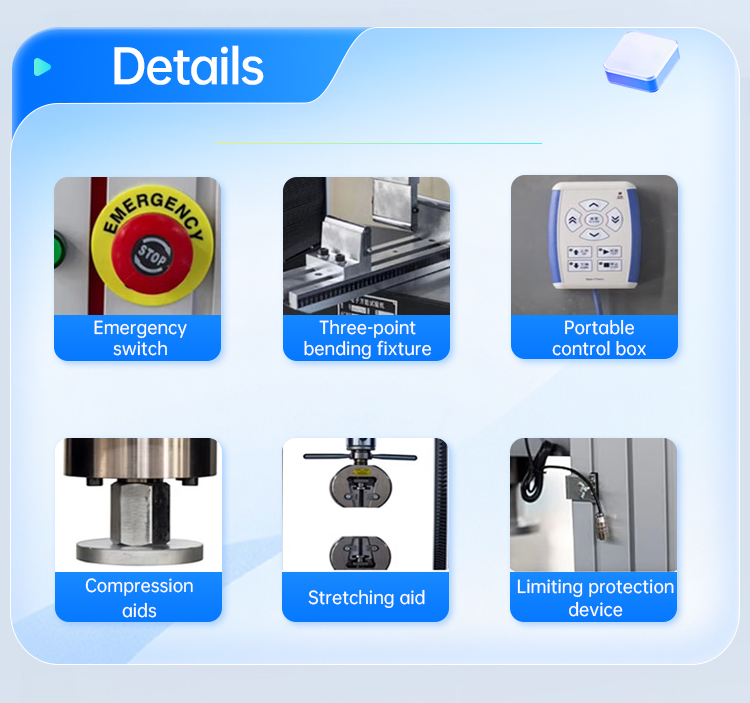 4. Ao adotar uma estrutura de espaço duplo para tração e compressão, a operação é conveniente e evita o processo complicado de substituir diferentes acessórios de teste ao alternar entre flexão por tração e compressão no mesmo espaço.